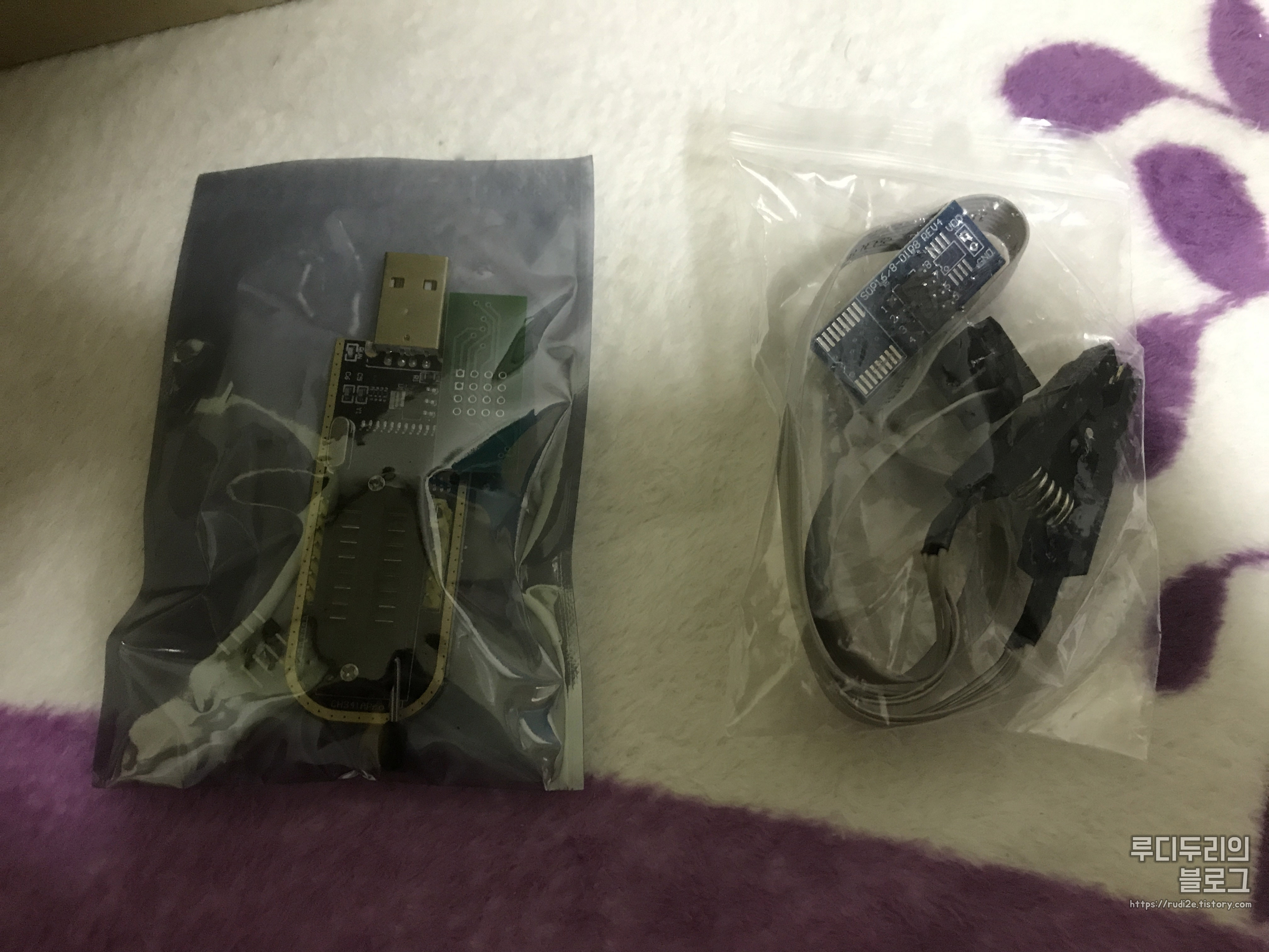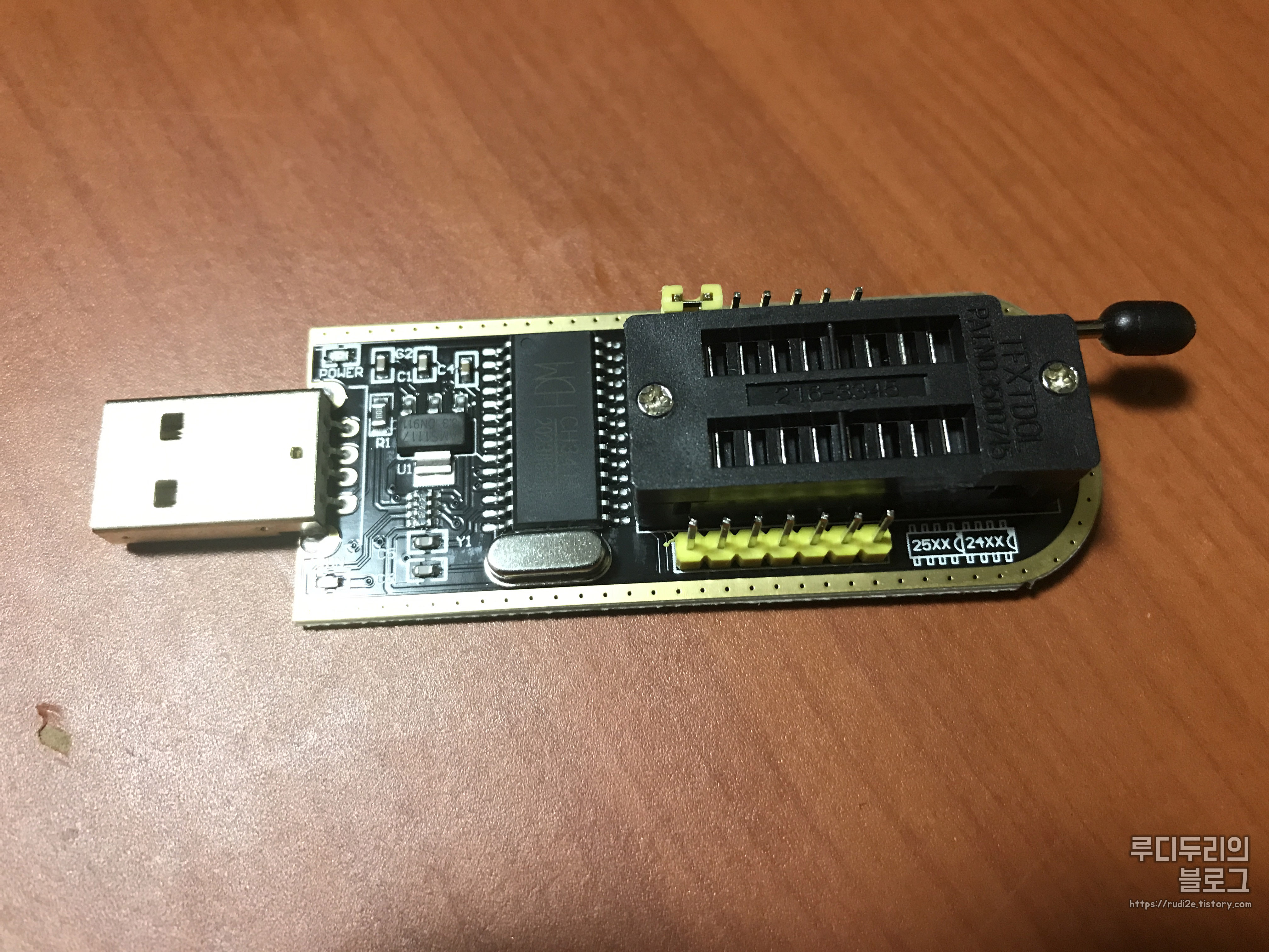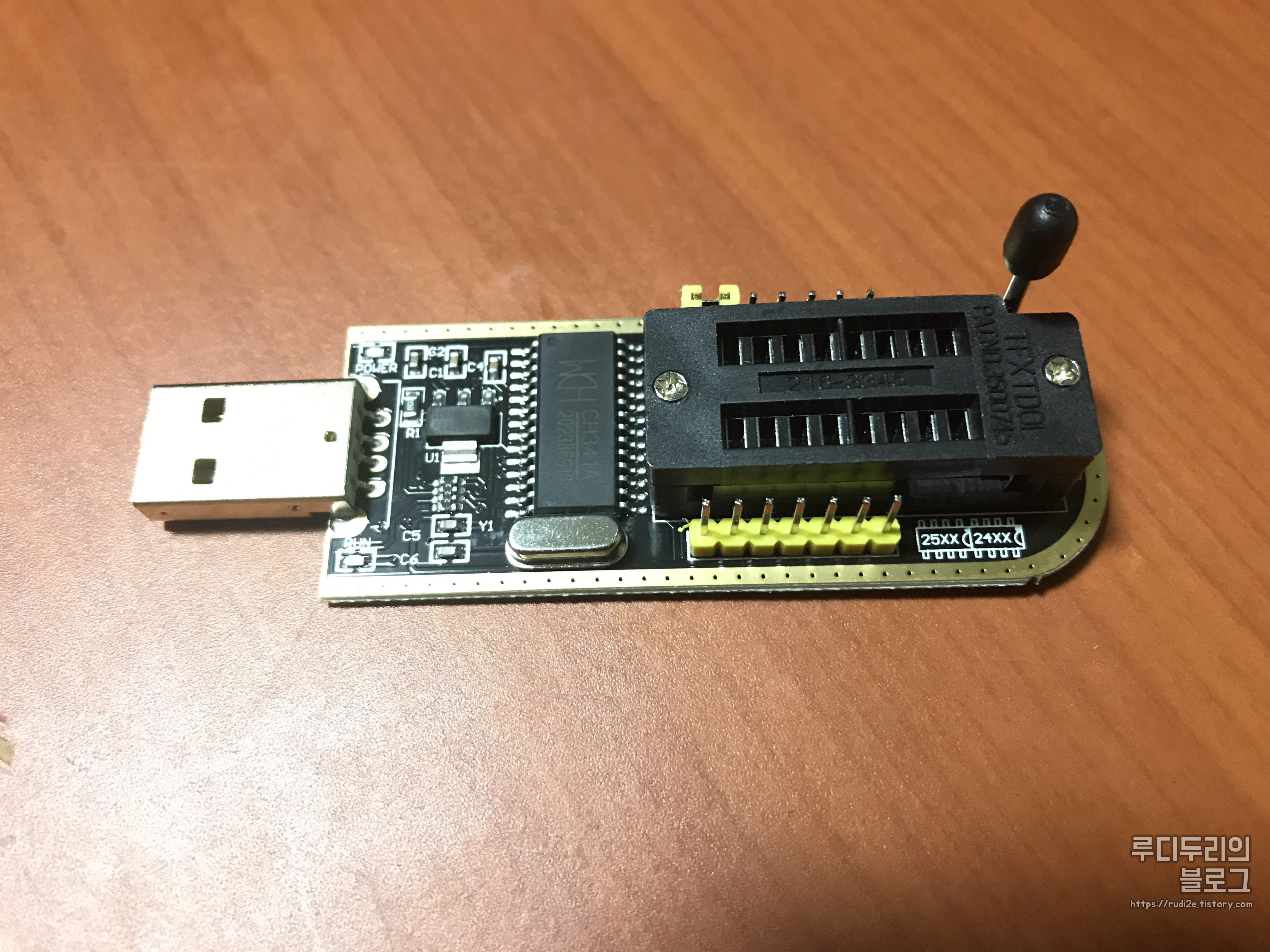 이 롬 라이터는 왼쪽에 25XX 계열 롬 (SPI BIOS), 오른쪽에 24XX 계열 롬 (EEPROM)을 연결할 수 있고