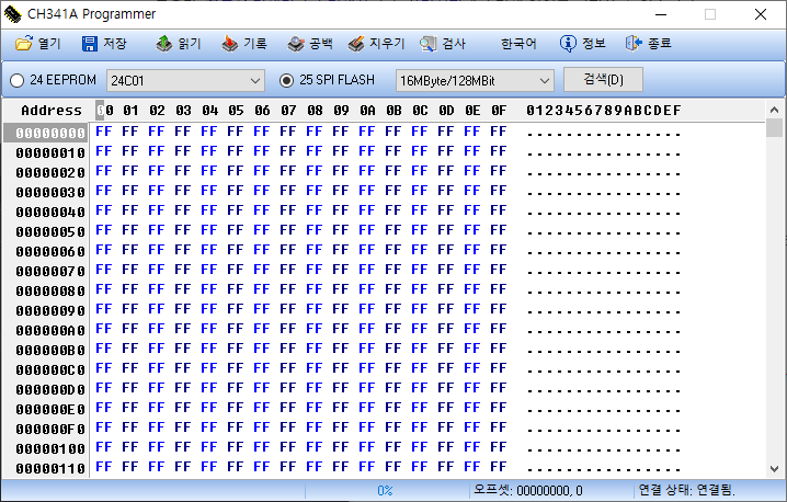 - 24 EEPROM은 종류를 선택하고 25 SPI FLASH는 용량이 일치하는 것으로 선택한다.