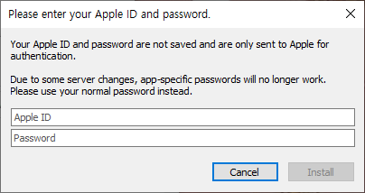 Microsoft Store에서 설치한 iTunes 및 iCloud가 있을 경우 먼저 설치된 앱을 제거해야 설치할 수 있다.