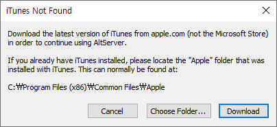 iTunes 및 iCloud가 설치되어 있지 않다면 Download를 눌러 해당 설치 프로그램을 받은 다음 설치하면 된다.